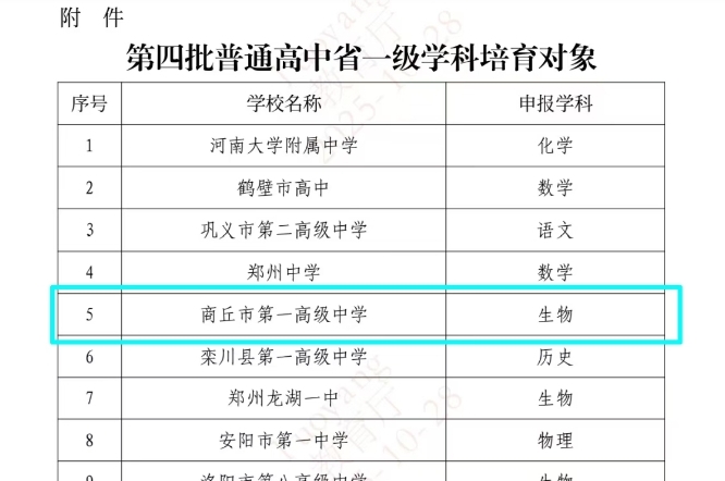 热烈祝贺!商丘市第一高级中学(生物学科)被确定为...