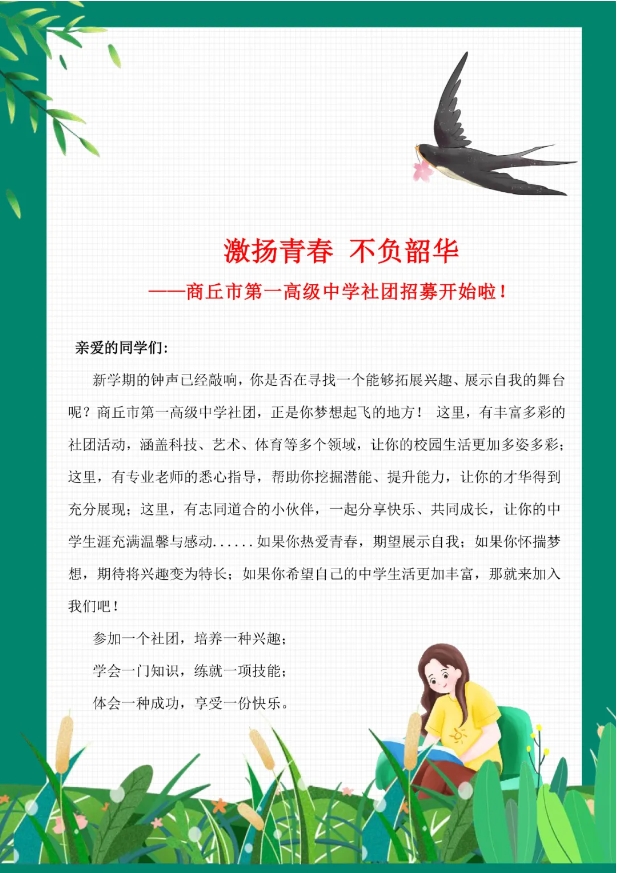 激扬青春 不负韶华|商丘市第一高级中学社团招募开...