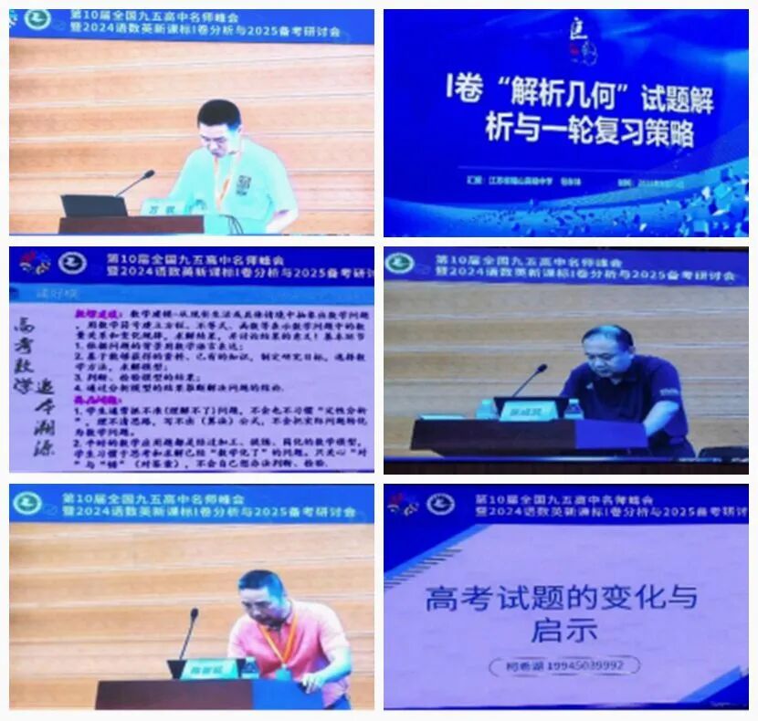 本次研讨会共邀请了6位在数学教育领域具有深厚造诣的专家进行专题讲座。他们通过线上线下相结合的方式,围绕高考数学备考的关键点进行了深入探讨。浙江衢州中学的万祺老师讲解新课标I卷压轴题、强基以及竞赛题的解题策略,由浅入深,为老师们提供了宝贵的教学思路和方法;江苏省锡山高级中学的包东妹老师介绍了解析几何备考的有效策略,帮助老师们把握这一部分的备考要点;南昌教科院刘臻老师以“高考数学,追本溯源”为主题,探讨了如何从根本上提高学生的数学能力;济南历城第二中学张成凯老师通过对历年全国卷的总体分析,为老师们提供了全面的备考视角和策略建议;厦门教科院陈智猛老师深度解析2021—2024年高考命题原则,揭示了近年来高考数学试题的变化趋势;武昌实验中学柯希湖老师分享了高考试题的变化与启示,为备考工作提供了新的思考角度。