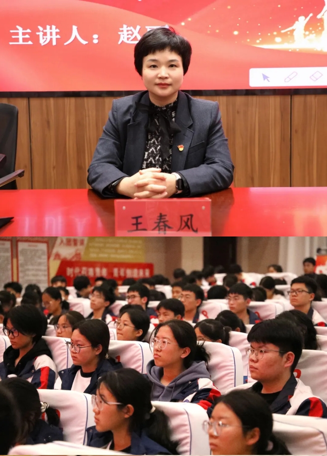 10月25日下午,商丘市第一高级中学工会主席赵丽为200余名入团积极分子带来了一堂题为《青春跟党走 建功新时代》的精彩团课。团委书记王春风主持团课。